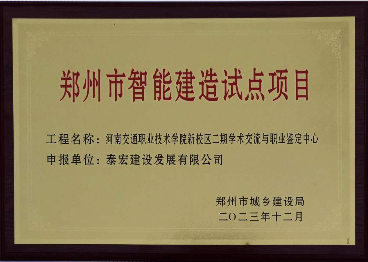 2023年12月13日,郑州市建筑业协会组织召开了“郑州市智能建造试点企业和试点项目评价标准宣贯培训交流会”,颁发了郑州市首批培育智能建造试点企业、项目牌,江南网投入选首批郑州市智能建造试点企业,承建的省直青年人才公寓博学苑和河南交通职业技术学院新校区二期学术交流与职业鉴定中心两个项目,入选首批郑州市智能建造试点项目。